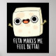Feta me Fell Betta Funny Cheese Pun comporte un mignon bloc de fromage feta déclarant que la feta le fait se sentir mieux. Parfait Puns cadeau pour la famille et les amis qui aiment les mignonettes de fromage feta.