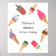 Affiche de fête d'anniversaire glace avec des popsicles et des cônes de glace colorés, roses, bleus, verts, marrons. Plus de produits avec ce design sont dans la collection ci-dessous.