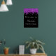 Une affiche de bienvenue pour une fête d'anniversaire de 21e anniversaire (ou de tout âge), fillette et glamour. Un élégant arrière - plan noir décoré avec des gouttes de parties scintillant violet, la peinture goutte à goutte. Personnalisez et ajoutez un nom et 21 ans. Lettres blanches.