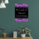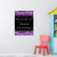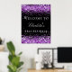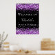Un conseil d'accueil pour une fête d'anniversaire girly et glamour de 21e (ou tout âge). Un élégant arrière - plan noir décoré de faux parties scintillant violet brille. Personnalisez et ajoutez un nom et 21 ans. Lettres blanches.