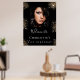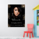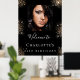 Un conseil d'accueil pour une fête d'anniversaire de 21e (ou tout âge). Personnalisez et ajoutez une photo, un nom et un âge. Un arrière - plan noir classique et de la poussière de parties scintillant en faux or. Dos : pas de design.