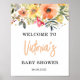 Affiche de Fête de Bébé Bienvenue Fleurs Aquarelle Orange