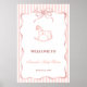 Célébrez votre petit ange avec ce panneau de bienvenue pour fête de bébé Cheval à Bascule, conçu avec un charmant nœud rétro, une bordure ondulée douce et un style vintage rayé classique. Ce design intemporel allie l'élégance nostalgique à la simplicité moderne, ce qui le rend parfait pour les fêtes de bébé fille.