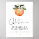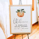Ce panneau de bienvenue pour la fête de mariage présente une mandarine clémentine orange aquarelle avec de jolies fleurs blanches aquarelle et une police script amusante. Ce panneau de bienvenue est parfait pour votre fête de mariage ou brunch de mariage sur le thème des agrumes ou peut être utilisé pour tout autre événement inspiré des fruits tropicaux.