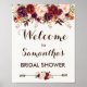 Pancarte de bienvenue bohème floral avec des fleurs aquarelles rustiques marsala, bordeaux et rose