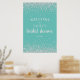 Panneau de bienvenue élégant pour fête de mariage sarcelle avec confettis diamantés argentés scintillants. Contactez-nous pour obtenir de l'aide sur la personnalisation ou les produits correspondants.