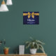 Affiche Fête de mariage ruban doré bleu foncé