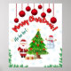 Affiche Fête de Noël : Père Noël, Snowman & Tree