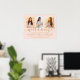 Ajoutez une touche personnelle aux décorations de fête de fin d'études universitaires ou de lycée avec un élégant poster de bienvenue en collage de 3 photos de 18"x24". Les images et tout le texte sur ce modèle de panneau téléchargeable sont simples à personnaliser, et les couleurs sont faciles à modifier avec l'outil de conception Zazzle. Le design rose blush et or présente une calligraphie manuscrite tendance, une typographie minimaliste moderne chic et trois photos de votre choix, telles que des photos de fin d'études ou des images de la cérémonie de remise des diplômes. Veuillez noter que l'or est une couleur imprimée, pas une feuille métallique. Cette affiche de fin d'études imprimable est un moyen élégant de souhaiter la bienvenue aux amis et à la famille pour célébrer ce jour spécial. Félicitations au diplômé !