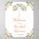 Belle affiche de douche nuptiale avec parapluie blanc et arrangements pêche et crème fleuris. Parfait pour un baby shower. Les mots peuvent être changés en fonction de vos propres détails ou exigences