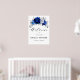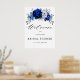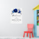 Elégante affiche d'accueil mariage à thème bleu royal blanc blanc blanc avec bouquet élégant de bleu royal, marine, argent, couleur blanche pure bourgeons de fleurs roses et sauge vert eucalyptus feuilles. Veuillez me contacter pour toute aide sur la personnalisation ou si vous avez besoin d'un autre produit avec ce design.