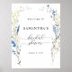 Affiche de bienvenue Fête des mariées de fleurs sauvages Blue Dainty. Panneau de bienvenue bleu foncé, bleu marine et jaune vif de la nuptiale fleurie. Belle aquarelle peinte à la main fleurs sauvages en bleu et jaune parfait pour les douches nuptiales romantiques printemps, été et automne. Éléments correspondants disponibles.