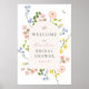 Un panneau d'accueil de douche nuptiale avec des fleurs pastel douces et des papillons délicats entourant une élégante disposition de texte voûté. Parfait pour ajouter une touche romantique à la célébration spéciale de la future mariée.