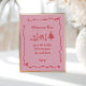 Affiche Fête des mariées manuscrite rouge rose Mimosa Bar