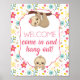 fête d'anniversaire de paresse fille signe de bienvenue avec fleurs de printemps. Entrez et sortez !
