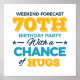 Décoratif et coloré 70ème anniversaire spécial citation disant avec une phrase drôle comme Weekend Forecast 70ème Anniversaire Fête Avec un changement de Hugs. Joyeux 70ème anniversaire pour célébrer l'anniversaire de vos proches par exemple votre grand-mère, grand-père, père, mère, oncle ou tante. Bonne idée cadeau de 70ème anniversaire.