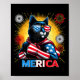 Affiche Feu d'artifice Chat noir patriotique Drapeau améri