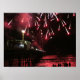 Feu d'artifice rouge au-dessus de l'eau à la jetée d'Hermosa Beach, CA.