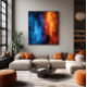 Une intense œuvre d'art abstraite explorant le choc entre un bleu glacial profond et une chaleur orange flamboyante. Des textures fragmentées évoquent des émotions opposées — calme contre passion, silence contre explosion. Parfait pour les espaces recherchant un impact visuel et une profondeur conceptuelle. Une pièce qui provoque la réflexion et réveille l'âme avec son énergie dynamique et contrastée.