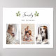 Cette affiche simple et élégante dit "Famille" en typographie manuscrite tendance avec des feuilles d'aquarelle vert délicat sur un arrière - plan blanc. Ajoutez votre nom de famille et trois de vos photos préférées pour personnaliser.