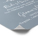 Ce panneau d'affiche minimaliste en bleu feuille et blanc est parfait pour un mariage élégant. Le design se compose d'une simple silhouette de verdure blanche sur un arrière - plan bleu poussiéreux au style minimaliste classique.