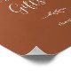 Ce panneau d'affiche minimaliste en feuilles de terre cuite et de cadeaux est parfait pour un mariage boho ou une douche nuptiale. Le design se compose d'une simple silhouette de feuille de verdure orangée brûlée et minimaliste de style bohème désert. La ligne de texte en bas du panneau peut être personnalisée avec la date, les noms de la mariée et du marié, ou un message court comme "Merci". Ce signe peut être utilisé pour un mariage, un événement ou une fête.