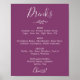 Ce panneau d'affiche de menu de boissons pourpre aux baies de feuilles minimes est parfait pour un mariage boho. Le design se compose d'une simple silhouette de feuilles de verdure dans une couleur violet d'été romantique avec un style bohème minimaliste de jardin.