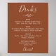 Ce panneau d'affiche minimaliste en terracotta mariage de boissons en feuilles est parfait pour un mariage de sauce. Le design se compose d'une simple silhouette de feuille de verdure orangée brûlée et minimaliste de style bohème désert.