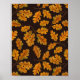 Affiche Feuilles de chêne automnal sur brun foncé