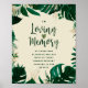 Feuillage Tropical Tendances de verdure et de feuilles Bordure Mariage personnalisé En souvenir affectueux Panneau commémoratif. Parfait pour la décoration de votre réception ou fête, pour se souvenir des êtres chers disparus. Dans une palette de couleurs audacieuses de verts riches, émeraude et doré. Ce design est parfait pour un mariage sur la plage, de destination ou d'été. Avec les sentiments d'un paradis tropical, ce design de feuilles de palmier vives complétera votre lieu de mariage sur la plage ou tropical. Dans un schéma de couleurs vert foncé, sarcelle, émeraude, verdure et or - Panneau commémoratif En souvenir affectueux de la réception de mariage.
