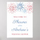 Cette conception de panneau de bienvenue de fête comprend mes illustrations originales aquarelles (de rafales de feux d'artifice rouges et bleus), peintes à la main par moi avant d'être numérisées. Montré ici pour une douche de mariage Co-ed mais tout le texte peut être personnalisé selon vos besoins.