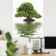 beau Ficus bonsai avec réflexion d'eau sur l'arrière - plan blanc