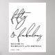 Fifty & Fabulous Birthday Party Welcome Sign. Greet guests in style with this bold and modern welcome sign design, featuring “Fifty & Fabulous” displayed prominently across most of the space in elegant handwritten script for a chic, celebratory look.