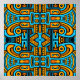 motif bleu et orange, dans le style de l'art maya, d'inspiration technologique