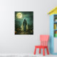 Sous une pleine lune lumineuse, une silhouette spectrale enveloppée de robes en lambeaux marche le long d'un chemin bordé de citrouilles. Le visage semblable à un crâne de la silhouette ajoute une qualité sinistre, tandis que le ciel sombre et nuageux renforce l'atmosphère inquiétante. Les ombres et les reflets s'entremêlent pour créer une scène mystique.
