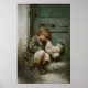 Fille avec poulet imprimable, Impression de maison de campagne rustique de coq