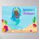 Bienvenue dans ma chambre d'enfants de maison de plage. Une jolie affiche sur le thème de l'océan bleu pour la chambre d'enfants pour une belle Africaine Américaine qui aime nager en été avec des sirènes. Comprend une jolie sirène noire aux cheveux bleus nageant autour du beau corail de l'océan. Un cadeau cool pour enfants avec de l'eau bleue profonde.