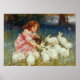 Affiche Fille donnant à manger à des lapins blancs