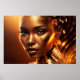 Peinture d'Art numérique d'une belle jeune femme noire aux accessoires dorés et au maquillage doré à la lumière dorée. Il s'agit d'un autre design 100% original Snuggle Hamster.