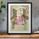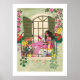Affiche Fille lisant sur un balcon estival avec des chats