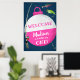 Symbole de bienvenue d'anniversaire avec un adorable thème de la pêche. Personnalisez avec vos informations ou cliquez sur "cliquer pour customiser plus loin" pour ajuster le type de police, la taille, la couleur.