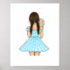 Jeune fille tenant un petit lapin crème-brun dans ses bras et sur ses épaules. La fille porte une robe de printemps à carreaux gingham bleu pastel. Un design adorable pour avril et la décoration des nurseries. Design idéal pour la chambre d'une fille.