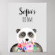Affiche Filles Belles Fleurs Aquarelle Panda et Nom
