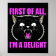 Affiche First Of All I'm A Delight Roaring Black Cat Quote