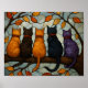 Affiche Five Cats on a Tree Branch Stained Glass Style