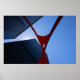 Ramenez chez vous une icône de Chicago ! En regardant du bas, les gratte-ciels modernes de Chicago sont encadrés par une structure abstraite en acier rouge audacieuse, contre un ciel bleu clair. Les éléments contrastés créent une perspective ascendante frappante.