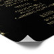 Menu de mariage. Bar Or & Black Starlights Mariage. Produits correspondants disponibles. ⭐ Ce Produit est 100% Personnalisable. *****Cliquez sur le BOUTON PERSONNALISER pour ajouter, supprimer, déplacer, redimensionner, modifier, tourner, etc...n'importe quel graphique ou texte ou utilisez les zones de remplissage. 99% de mes designs dans mon magasin sont faits en couches. Cela vous permet de "redimensionner" facilement et de déplacer les graphiques et le texte pour qu'il s'adapte parfaitement à chaque produit. ⭐ (Assurez-vous de redimensionner ou de déplacer des graphiques si nécessaire avant de commander) Vous pouvez également "TRANSFER DESIGN" sur d'autres produits Zazzle et ajuster la conception pour s'adapter à la plupart des articles Zazzle. (le bouton se trouve sur le côté droit de la page) Certains graphiques de texte sont prêts à remplir la ou les cases ou vous pouvez cliquer sur le bouton PERSONNALISER pour ajouter, déplacer, supprimer, redimensionner ou modifier une police ou un graphique. La conception est faite avec un vecteur haute résolution et/ou des graphiques numériques pour une impression professionnelle. REMARQUE ⭐ : (IL S'AGIT D'UNE IMPRESSION. Toutes les conceptions de produits zazzle sont des "impressions" sauf indication contraire dans la zone "A propos de ce produit") Le design sera imprimé EXACTEMENT comme vous le voyez à l'écran et sur le produit...par conséquent, assurez-vous que lorsque vous effectuez vos modifications sur le redimensionnement d'un graphique ou d'un texte qui s'insère correctement dans les zones et que votre orthographe et votre libellé sont ceux qui vous plaisent dans la taille, la couleur et la police. Si vous avez des questions sur le "DESIGN ONLY" ou si vous avez besoin d'aide sur le design, veuillez me contacter directement à l'adresse *siggyscott@comcast.net* ou visiter le lien de mon magasin : https://www.zazzle.com/store/magical_weddings (Copier et Coller) Je serai heureux de vous aider. ⭐ TOUTES LES AUTRES QUESTIONS ( ex : expédition, remboursements, l'impression n'est pas claire, le produit lui-même, etc...)VEUILLEZ CONTACTER ZAZZLE ou le MAKER du produit ⭐ DIRECTEMENT ⭐. Merci pour le support et arrêt par mon magasin - Magical_Mariages. © Donna Siegrist ⭐ ⭐ ZAZZLE ⭐ promet 100% de satisfaction. Si vous ne l'aimez pas vraiment, Zazzle le reprendra ! ⭐ ⭐ 1-888-8ZAZZLE (1-888-892-9953) Heures de téléphone : du lun au fri : 9h - 17h PT (12h - 20h ET)
