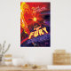 Poster Flares of Fury, AU Microscopii. Située à moins de 32 années-lumière de la Terre, AU Microscopii est l'un des plus jeunes systèmes planétaires jamais observés par les astronomes, et son étoile lance des tantrums de tempère vicieux! Ce jeune système démoniaque maintient la planète AU Mic en captivité à l'intérieur d'un disque de poussière fantomatique et le tourmente sans cesse avec des explosions mortelles de rayons X et d'autres radiations, défiant toute chance de vie - tel que nous le connaissons ! Attention ! On ne peut échapper à la furie stellaire de ce système. Les fusées monstrueuses de AU Mic vous feront mendier pour l'obscurité éternelle.