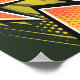 Une image pop art dynamique avec de grandes flèches audacieuses en orange, jaune et noir, coupant le cadre en diagonale. L'arrière - plan est rempli de points mi-teintes et de lignes pointues dans des tons verts et noirs contrastés, ajoutant un sens du mouvement et de l'énergie. L'utilisation de couleurs frappantes et de formes dynamiques évoque un style de bande dessinée rétro.