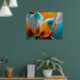 Affiche Fleur abstraite en orange et sarcelle
